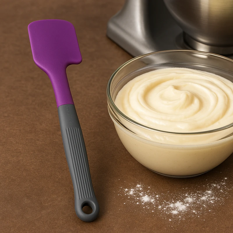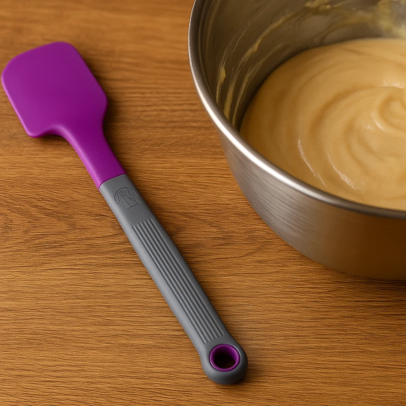 הלהב עשוי 100% סיליקון גמיש בדרגת מזון, עמיד בחום של עד כ-230 מעלות צלזיוס. הסיליקון אינו שורט משטחי עבודה, תבניות או כלי בישול, ומתאים לשימוש עם כלים מצופים כמו טפלון ונירוסטה מבלי לגרום נזק לציפוי.