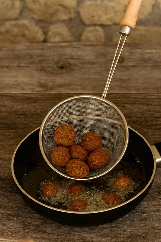 כף/מסננת טיגון ידית עץ מחוזקת 42 ס"מ