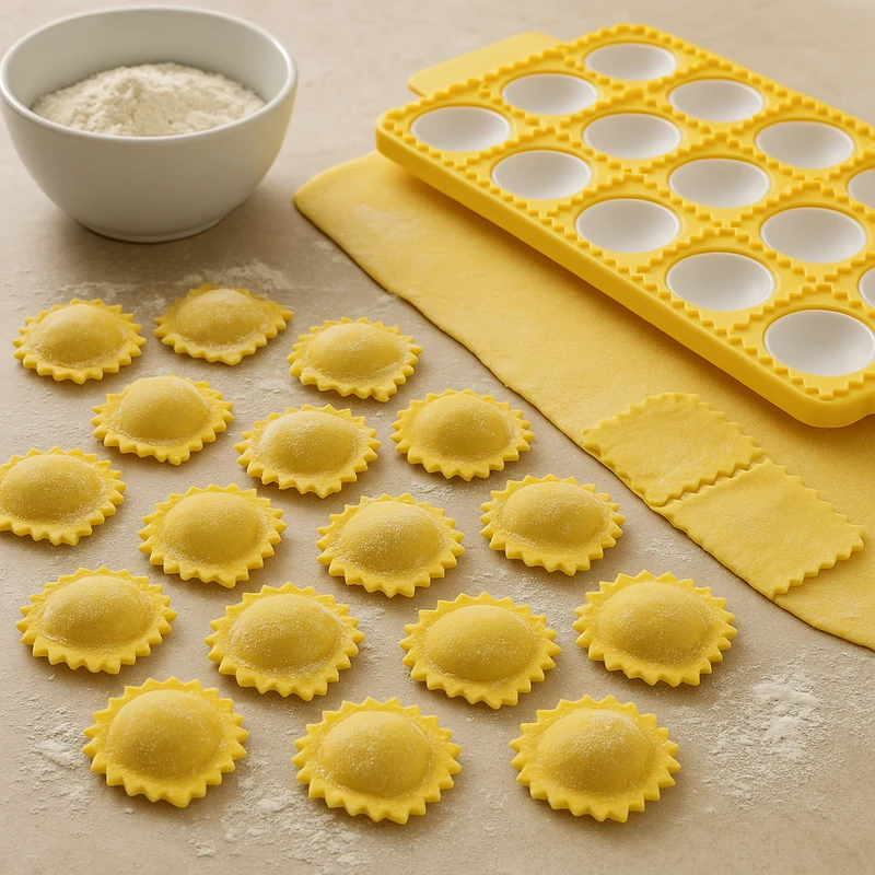 מגש להכנת רביולי – 21 שקעים ריבועיים, שתי חלקים, גודל 3.5 ס"מ