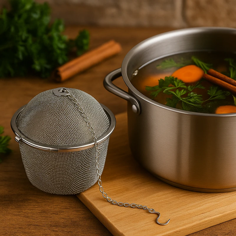 מסננת חליטה וכדור רשת לחליטת תה או עשבי תיבול בגודל XL היא אביזר חיוני לכל חובב תה, בישול טבעי או הכנת חליטות ביתיות. מדובר בכלי רב-שימושי המיועד להחזקת כמות גדולה יחסית של עלי תה, פרחים מיובשים, תבלינים או עשבי תיבול, והוא אידיאלי להכנה של קנקני תה גדולים, סירים עם חליטות טבעיות או צירי מרק מתובלים.