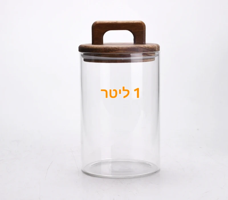 צנצנת זכוכית מכסה עץ 1 ליטר 19 ס"מ