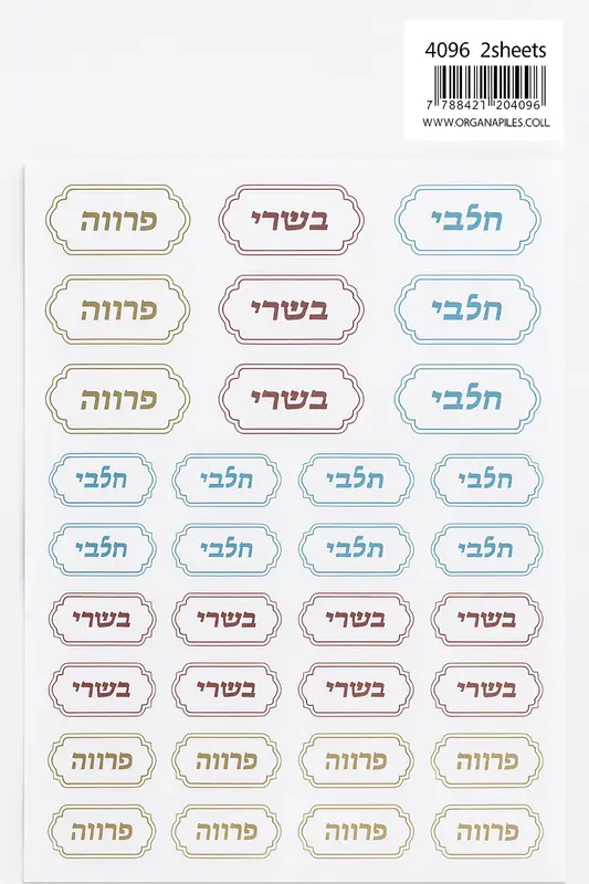 מדבקות חלבי בשרי פרווה 36 יח משולב גדול קטן