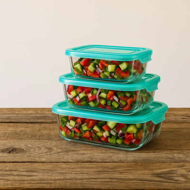 מתאים לחימום במיקרו סט זכוכית "פלאק" מלבני מארז 3 1040*640*370 מ"ל