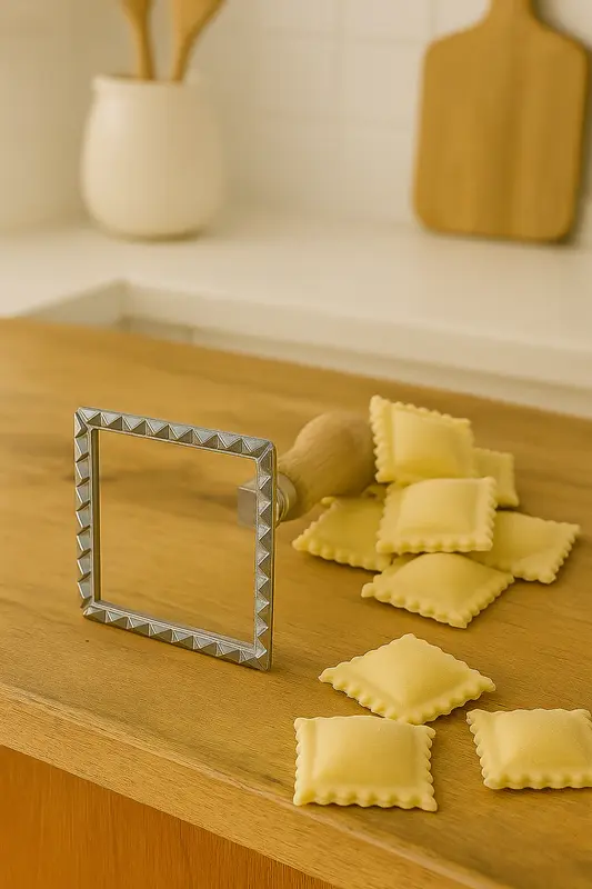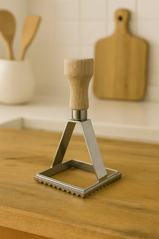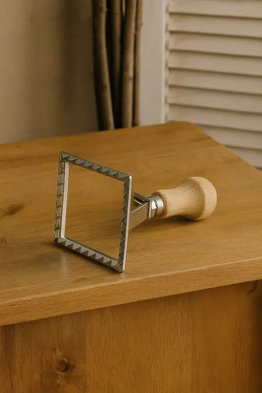 קורצן/חותמת לבצקים מרובע זיגזג 6.5 ס"מ ידית עץ