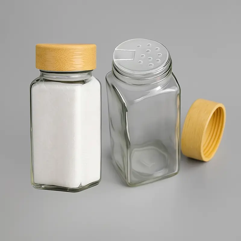מלחיה/תבליניה/צנצנת זכוכית מכסה במבוק דו מצבי 4.5*4.5 ס"מ