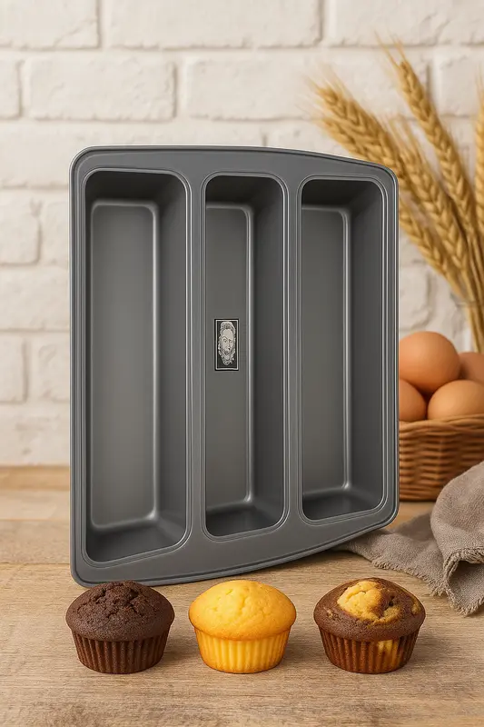 תבנית מלבנית מחולקת טריו ללחמים/עוגות שמרים ובחושות