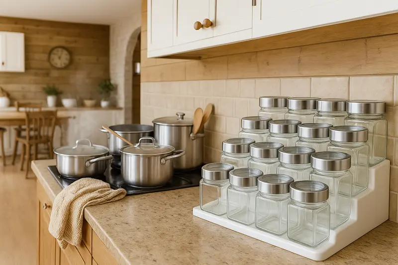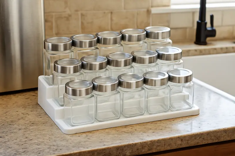 צנצנת תבלינים סאן רוף 6*6 ס"מ במבצע אשש מארז 15 יח כולל מדבקות וכולל מדף