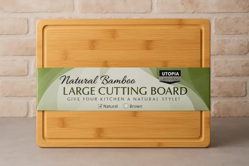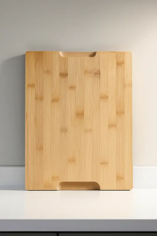 קרש בוצ'ר עץ L במבוק עבה כולל מסילה לניקוז נוזלים ומגרעות לאחיזה 46*30 ס"מ