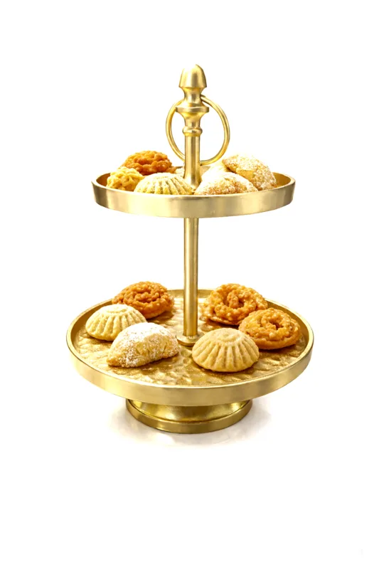 מעמד שתי קומות מעוצב יצוק בצבע זהבמעמד שתי קומות מעוצב יצוק בצבע זהב