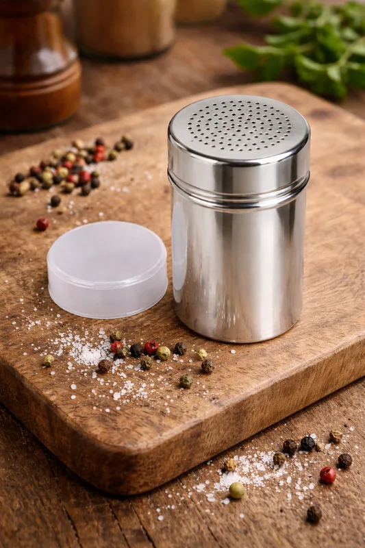 מלחייה/תבליניה/נירוסטה חורים קטנים כולל מכסהמלחייה/תבליניה/נירוסטה חורים קטנים כולל מכסה