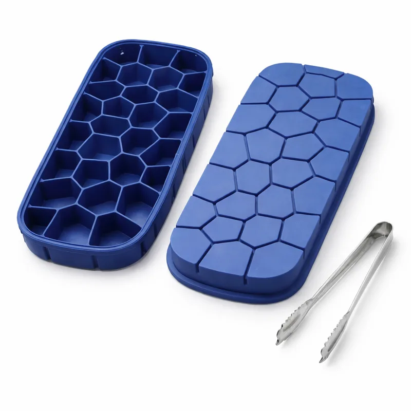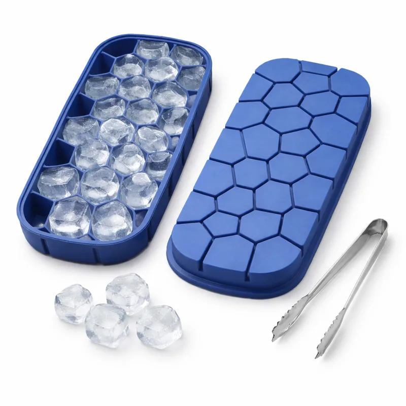 מגש/תבנית סיליקון לקרח דגם כוורת 22 שקעים כולל מלקחיים מיני מנרוסטה