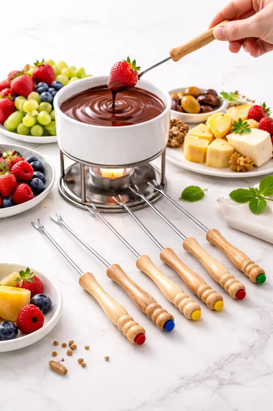 מקלות פונדו מארז 6 יח ידית עץ 25 ס"מ