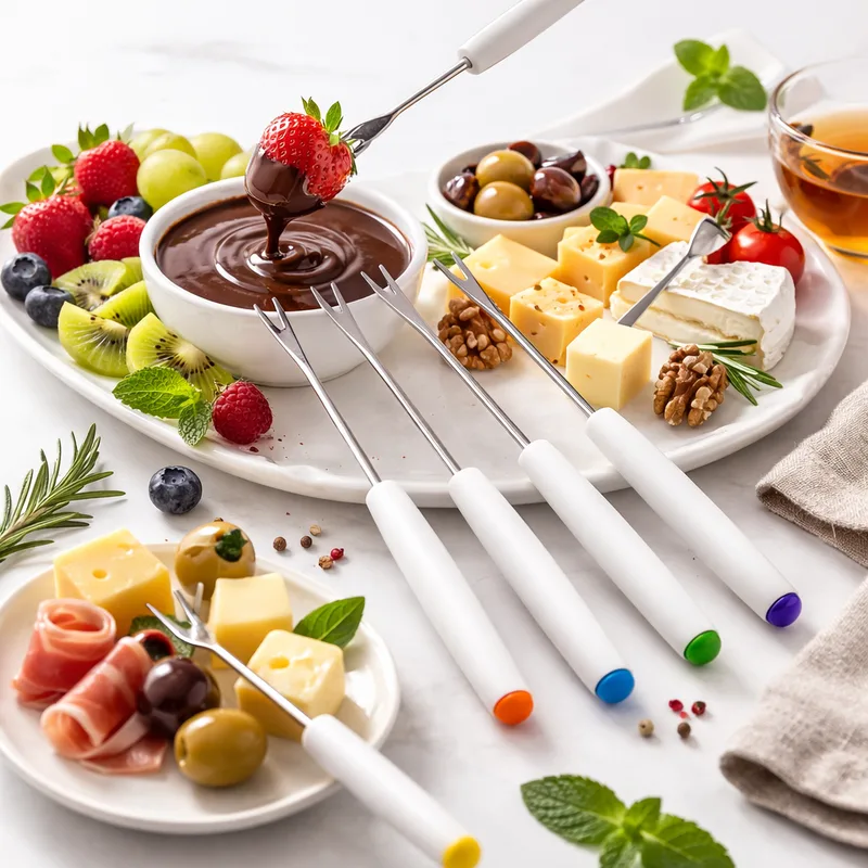 מקלות פונדו מארז 6 יח ידיות פלאסט לבנות 25 ס"מ